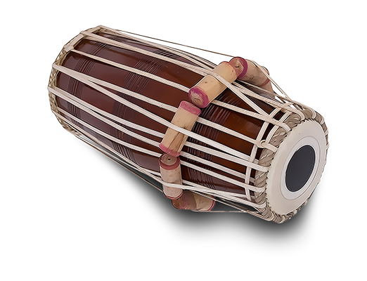 The Pakhawaj is an ancient Indian drum, ancestor to the Tabla. It has a barrel-shaped body made of wood, with intricate skin work on both sides. The right side head is made the same way as for Tabla (or rather Tabla is built the same way), with the Pakhawaj skin being usually larger and therefore deeper in sound. The left hand head is similar to Tabla’s bayan skin except that it doesn’t bear a permanent black paste circle in its middle. Instead the musician prepares a dough every time and applies it before playing, to make the sound of that skin very low and deep.
